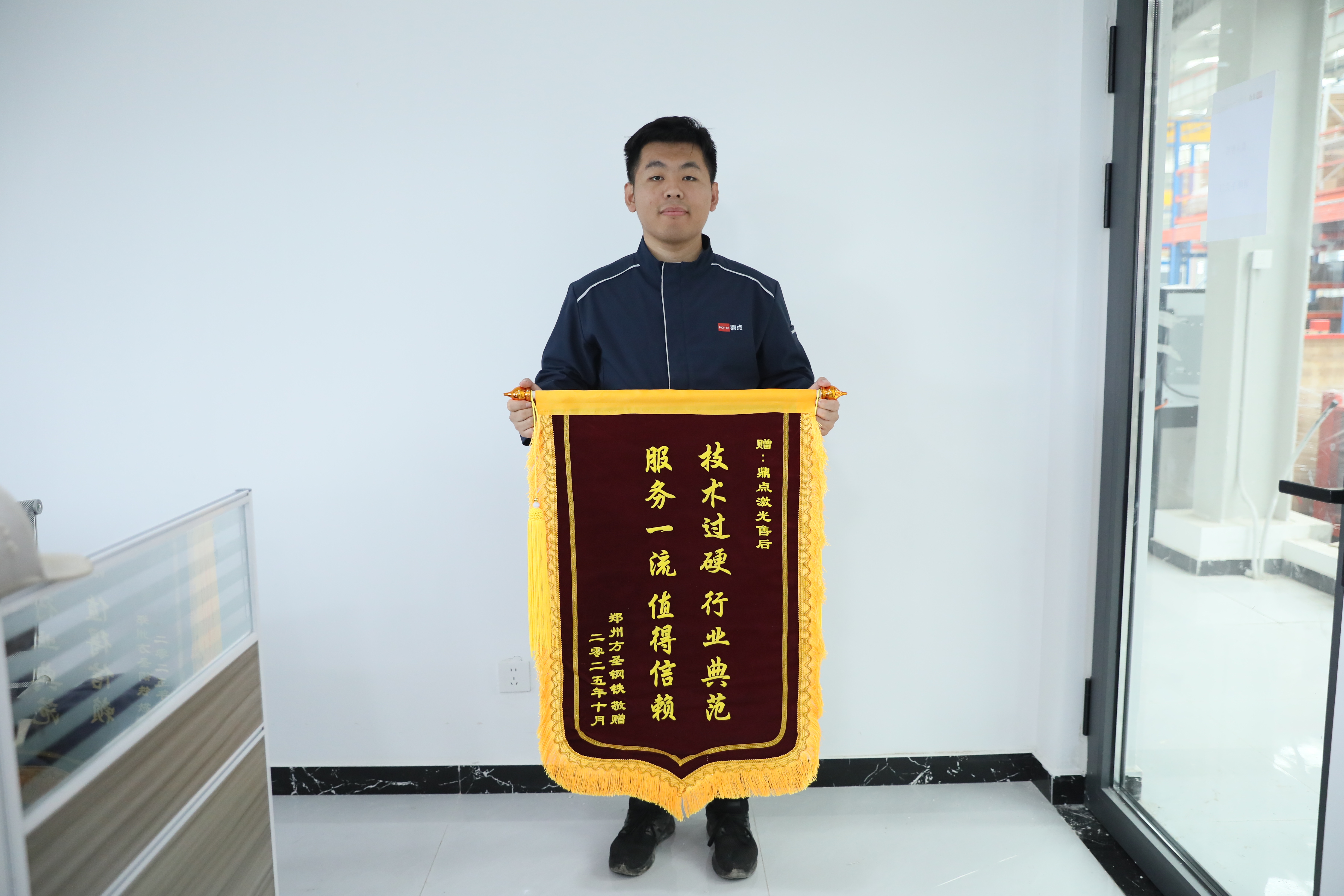近日,鼎點激光收到了一份特別的“禮物”——一面來自鄭州方圣鋼鐵贈送的錦旗。錦旗上“技術過硬行業典范,服務一流值得信賴”十六個字,承載著客戶的深厚謝意與高度認可。2024年方圣鋼鐵首次采購鼎點激光12036TKA,2025年再次回購公司產品6012VFA。合作期間,鼎點激光專業技術團隊始終提供可靠的技術支持,及時響應服務需求,并協助方圣鋼鐵對舊設備進行功率升級服務,切實踐行“客戶至上”的服務理念。在方圣鋼鐵車間配備多...
