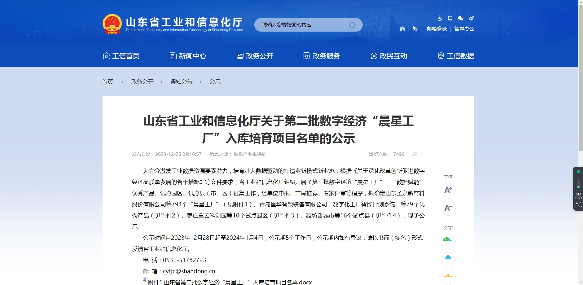 山東省工業和信息化廳公布了第二批數字經濟“晨星工廠”名單,濟南鼎點數控設備有限公司(以下簡稱“鼎點激光”)成功入選培育項目!