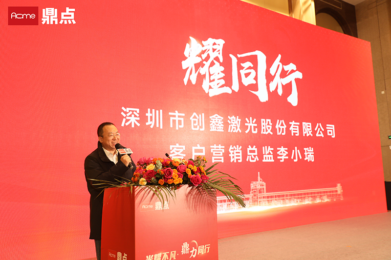 供應商代表深圳創鑫激光戰略客戶營銷總監李小瑞上臺致辭,表示將與鼎點激光繼續深化合作,共同推動激光裝備產業的發展和進步,為一線用戶帶來性能更好、價格更優的產品。